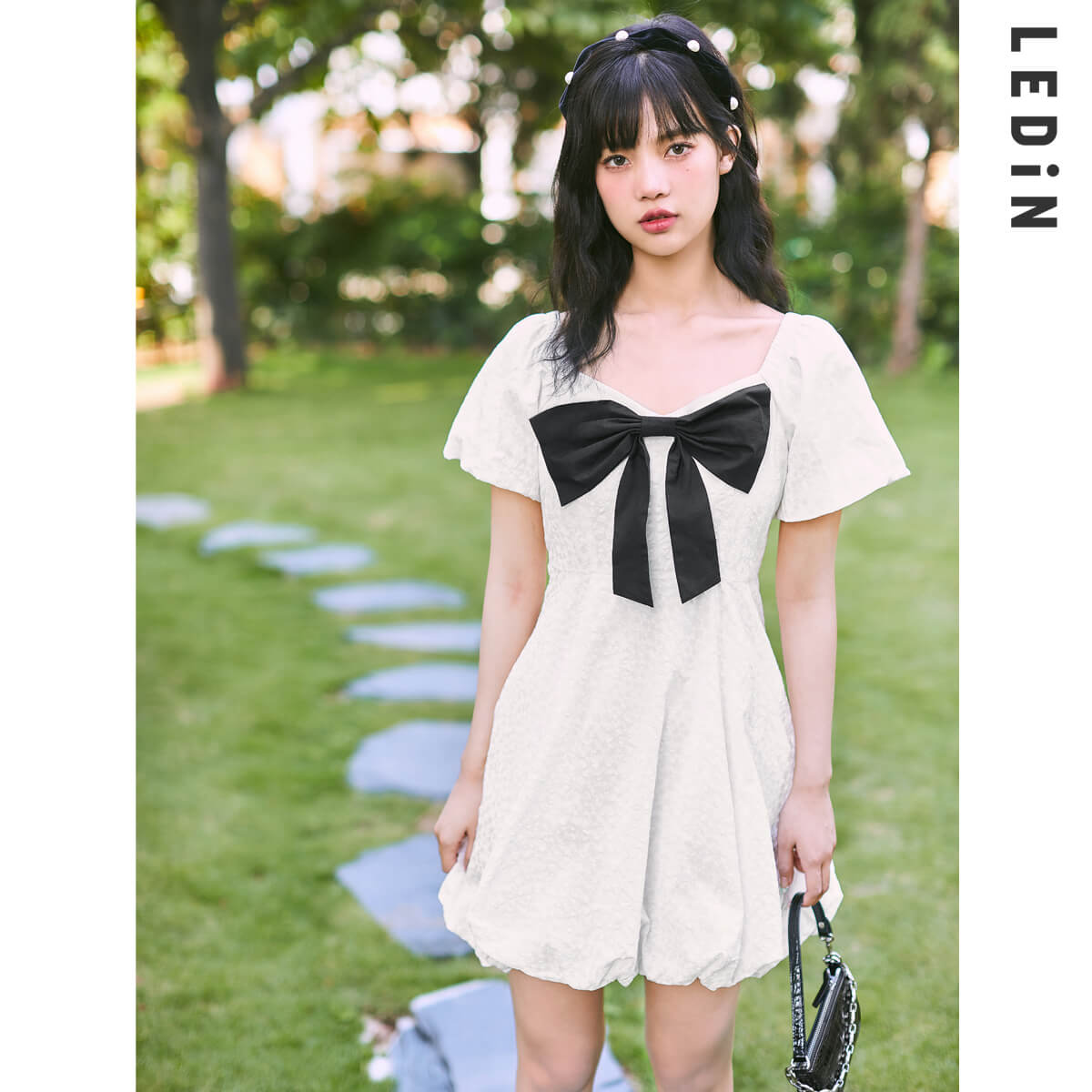 5分鐘前冰月連衣裙2021新款春蝴蝶結連衣裙方領茶歇裙 - 套餐二 買1送1-NT$1599